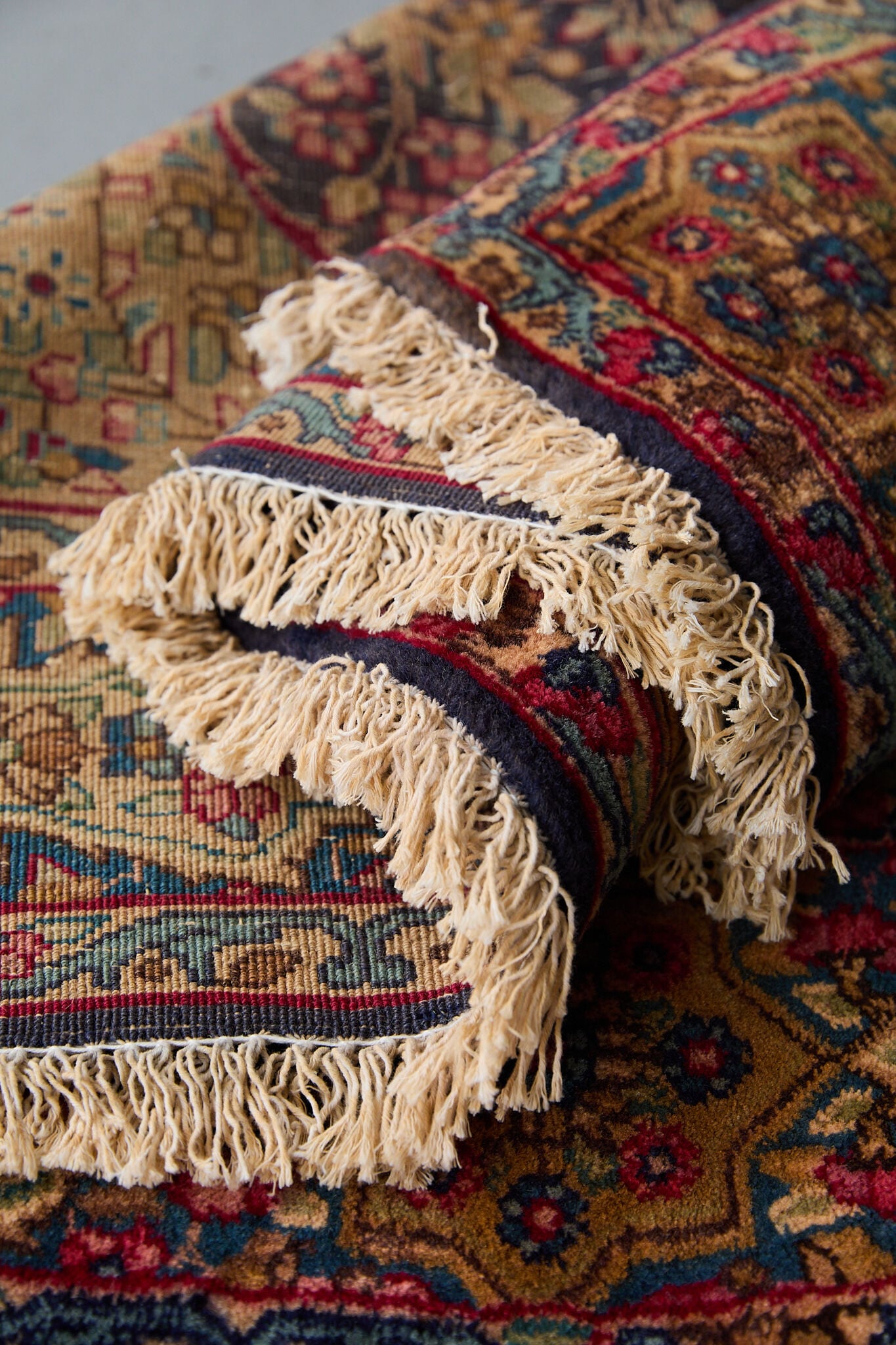 イラン産ウール100%、シャヒ・キルマン(ケルマン)のペルシャラグです。色とりどりの細かな美しい模様が、アンティーク家具とも相性抜群です。上品で華やかなデザインは、「ケルマンラバール」として世界中で愛されています。現地セラーと何度も交渉を重ね、ようやく手に入れた希少なヴィンテージ手織り絨毯です。今後、入荷予定はございません。