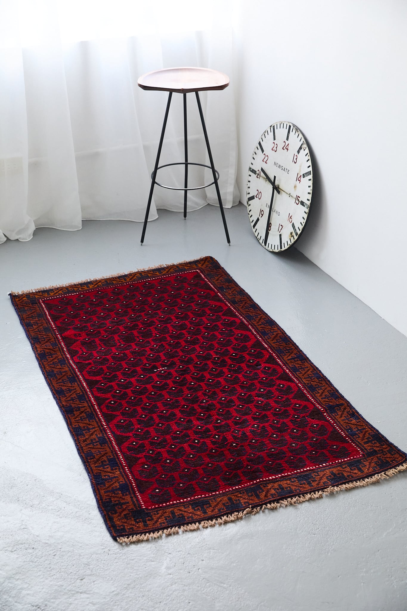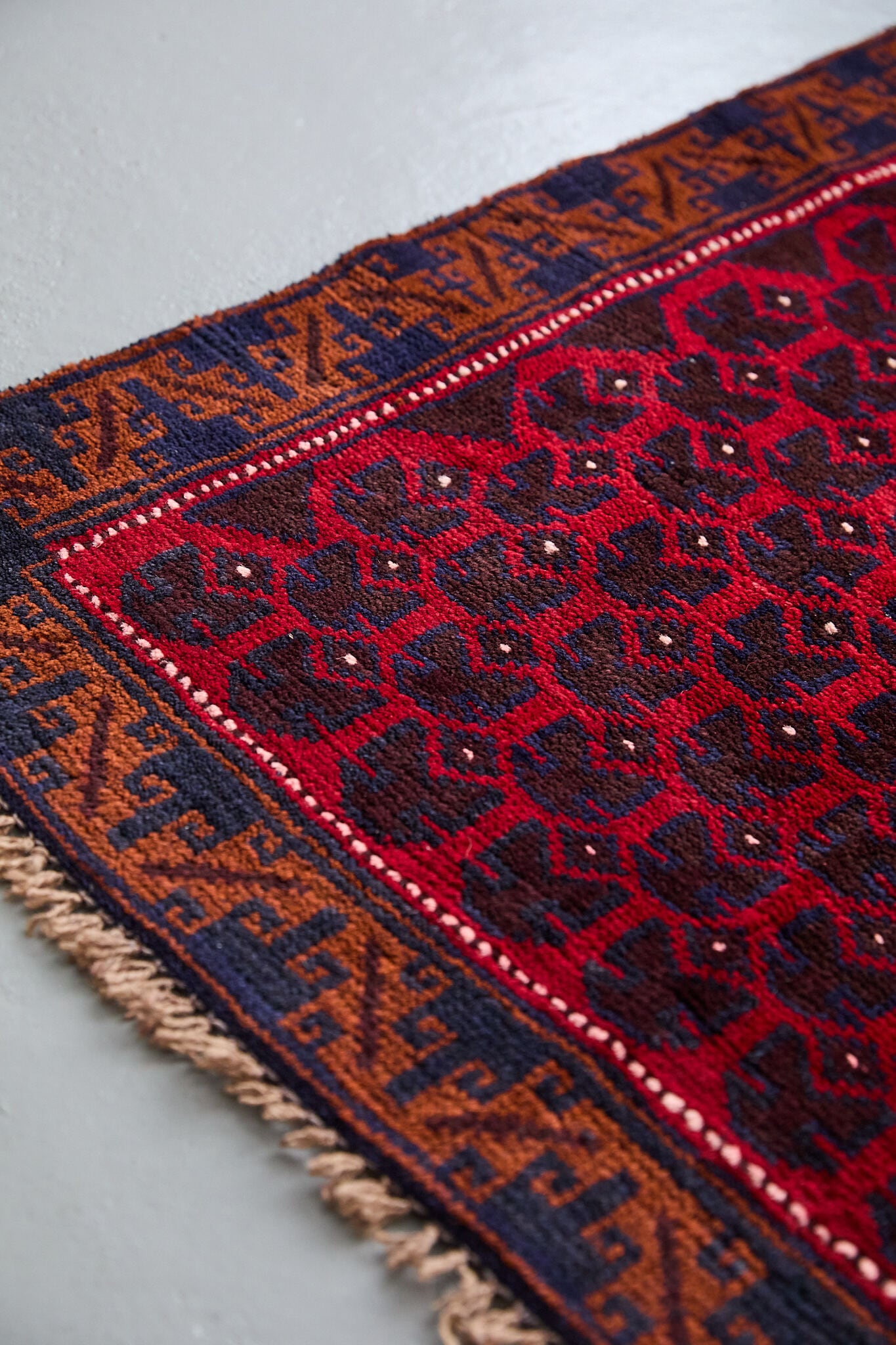 No.169 ヴィンテージラグ トライバルラグ バルーチ族 ウール(136×80cm)赤・茶
