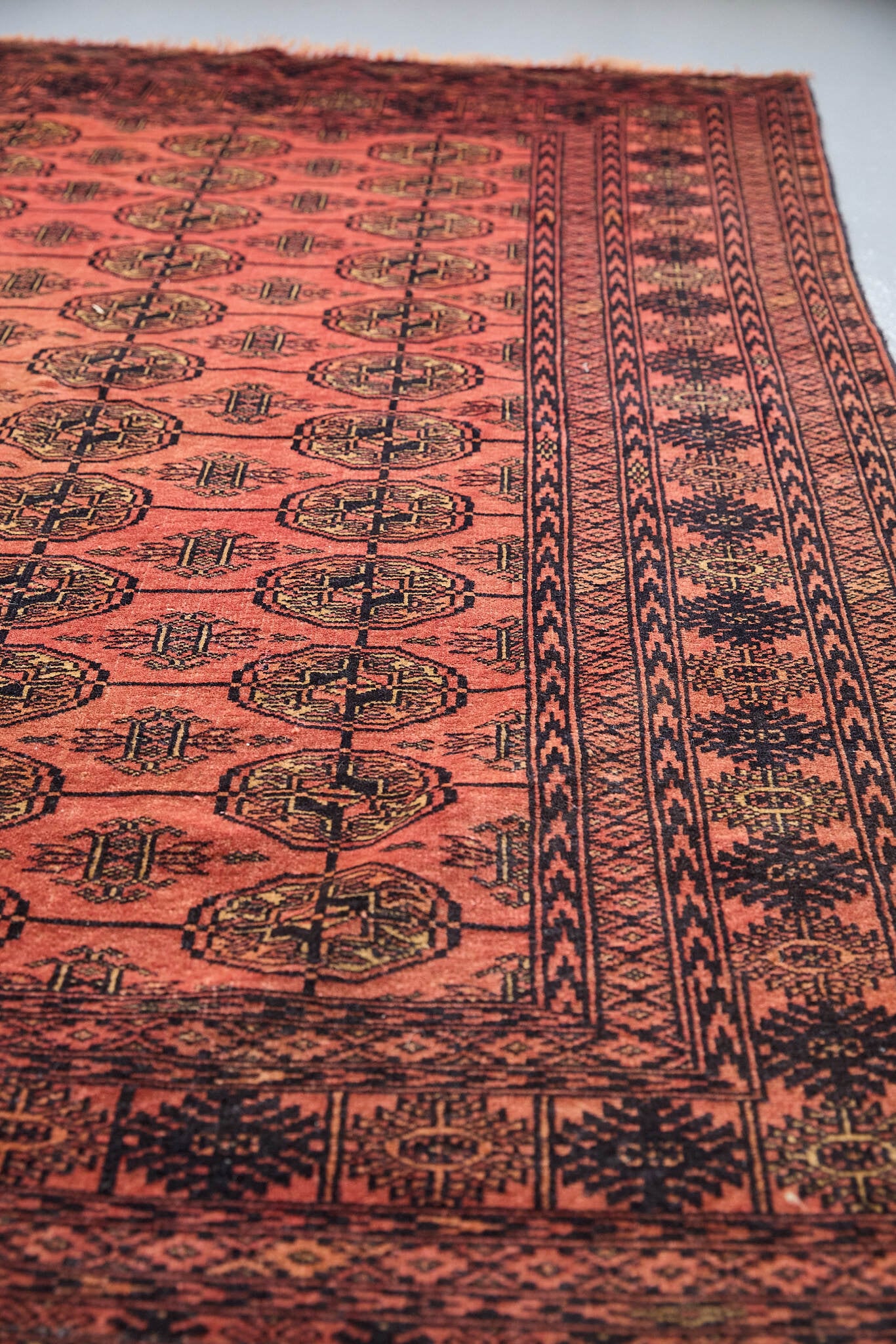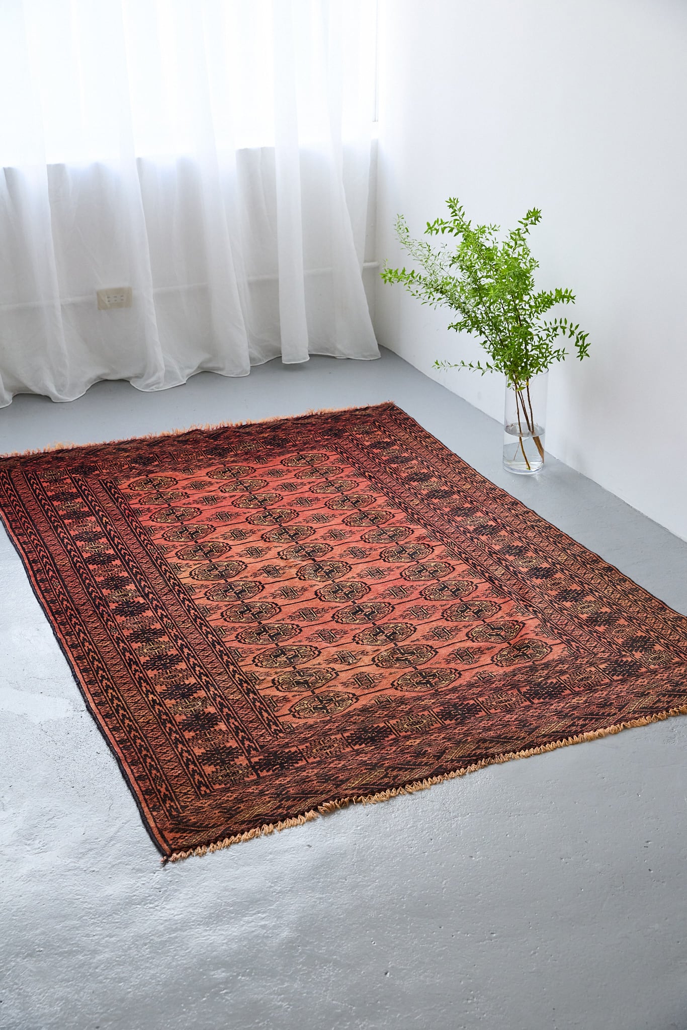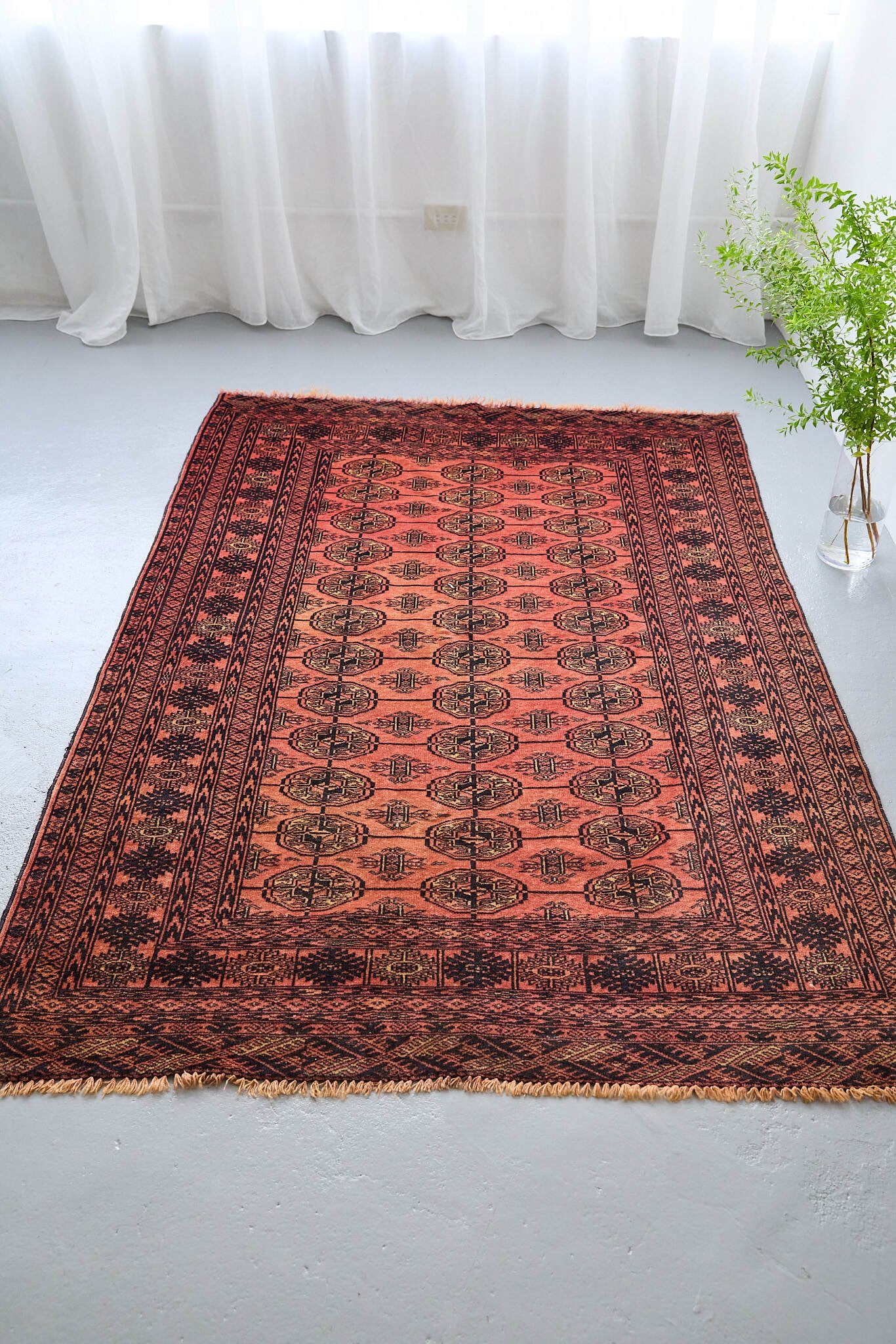 No.195 アンティークラグ トルクメン族 テケ絨毯(196cm×133cm)レッド ブラウン オレンジ ブラック