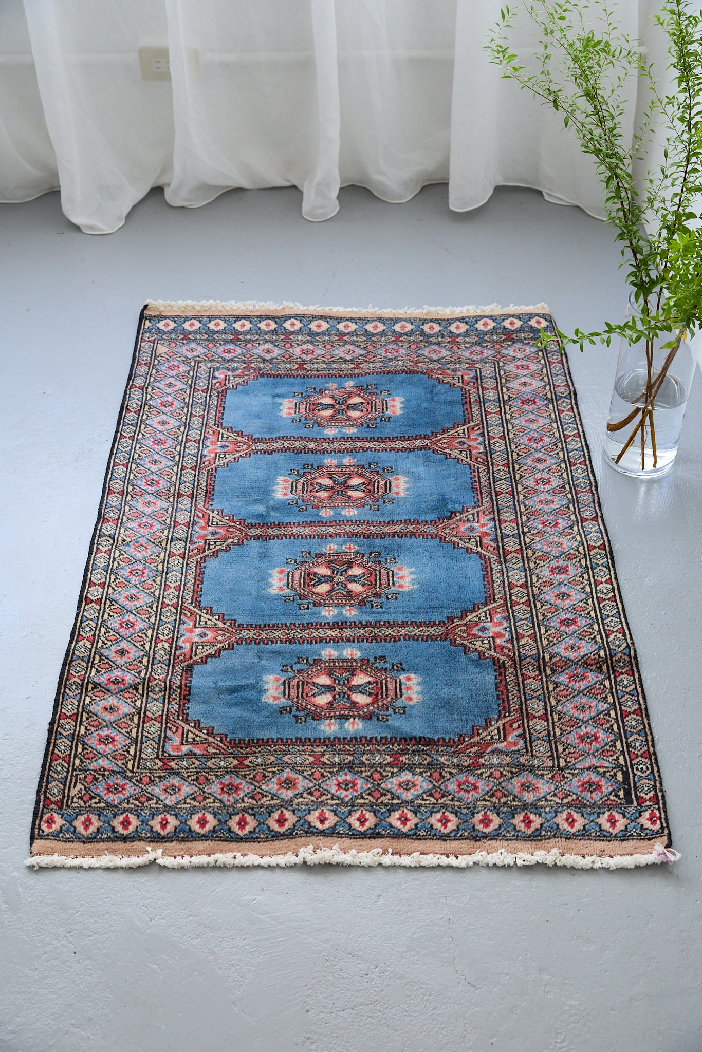 No.200 ヴィンテージラグ トライバルラグ ラホール産 (123×80cm)ブルー レッド グリーン