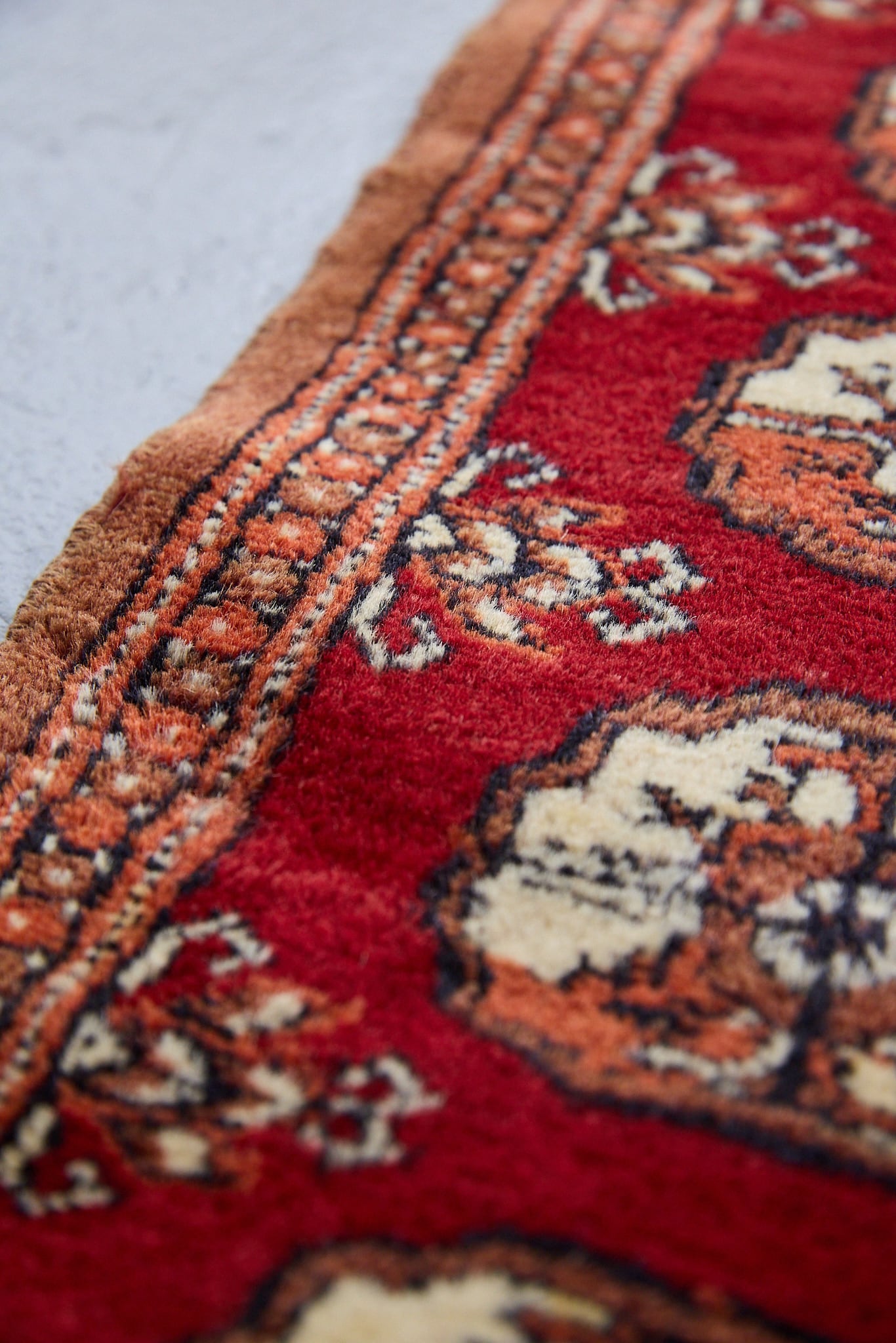 経年30年。使用頻度の少ない一枚。全体的にパイルは経年で程よく落ち着き、ヴィンテージらしい表情をまとっています。現地にてクリーニング後、国内でも再度クリーニングを施しております。