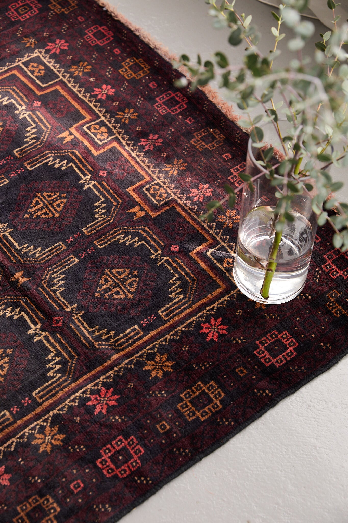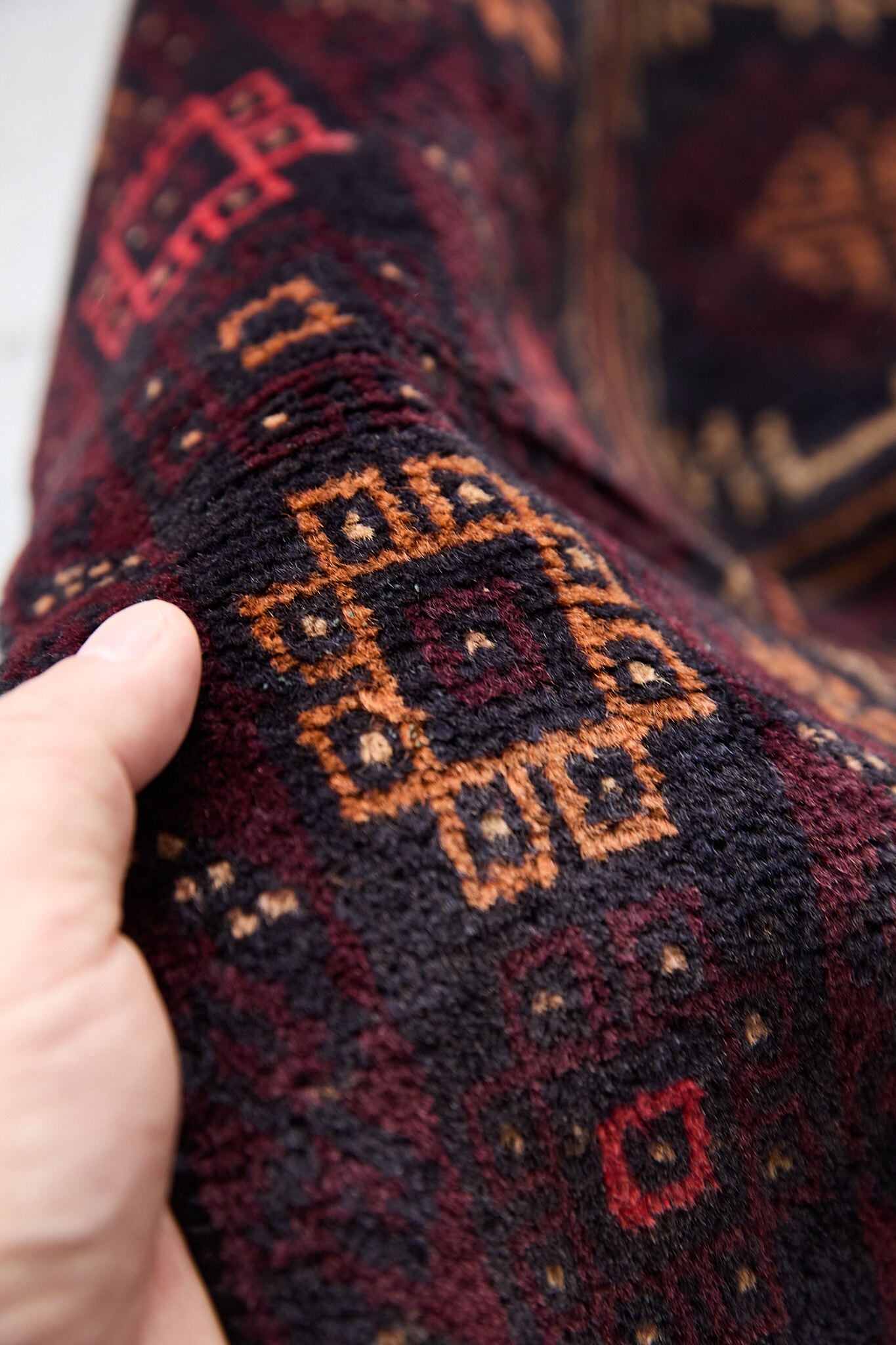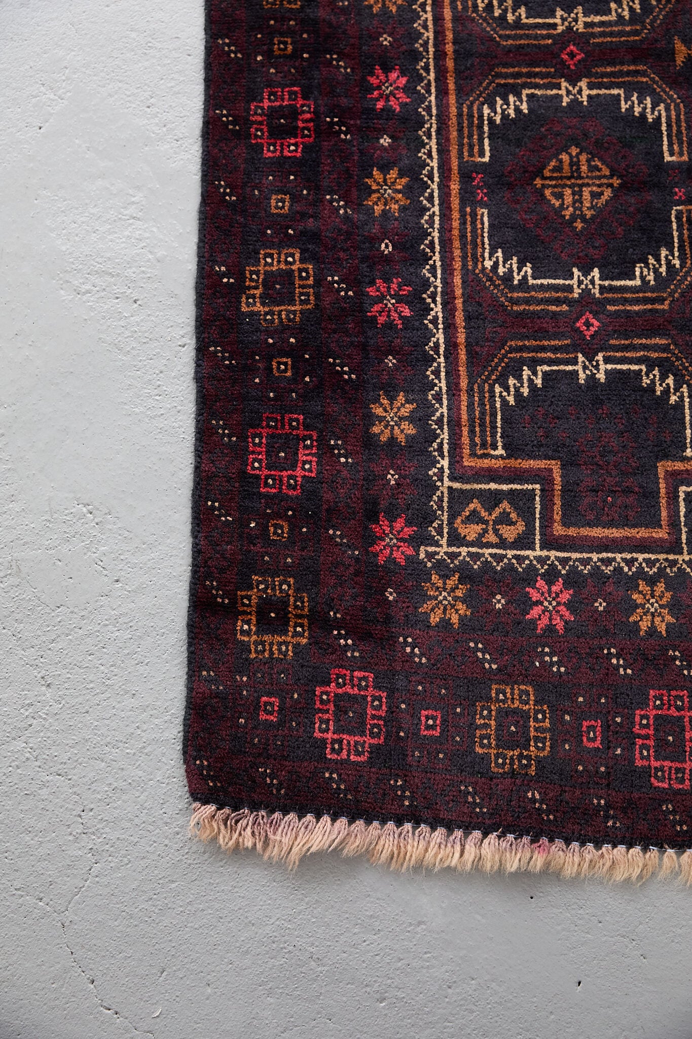No.228 ヴィンテージラグ トライバルラグ アフガニスタン産 バルーチ族(198×107cm)ブラック ネイビー レッド