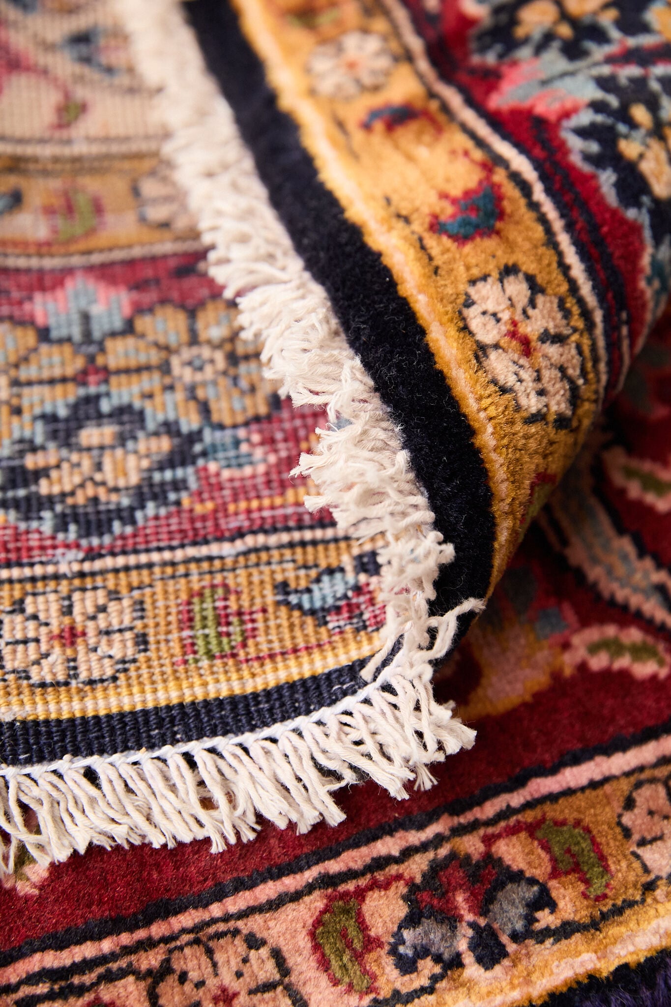 イランで丁寧に手織りされた、クラシックなメダリオンデザインのヴィンテージラグ。