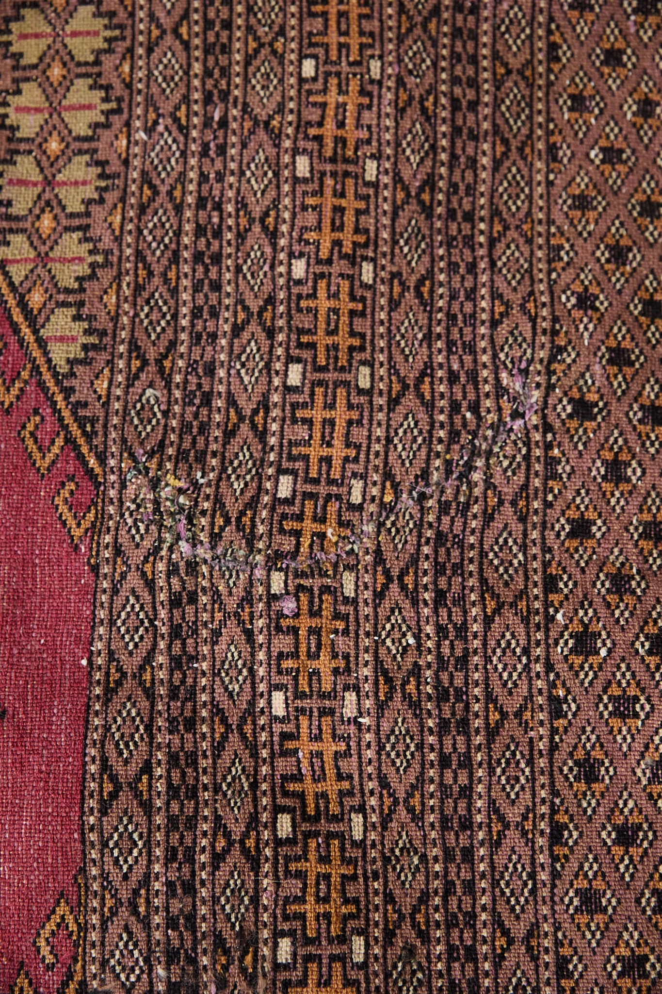 手織りヴィンテージラグ特有の “ゆらぎ” や “スレ”、修復跡が見られる場合がございます。経年変化の味わいとしてお楽しみください。